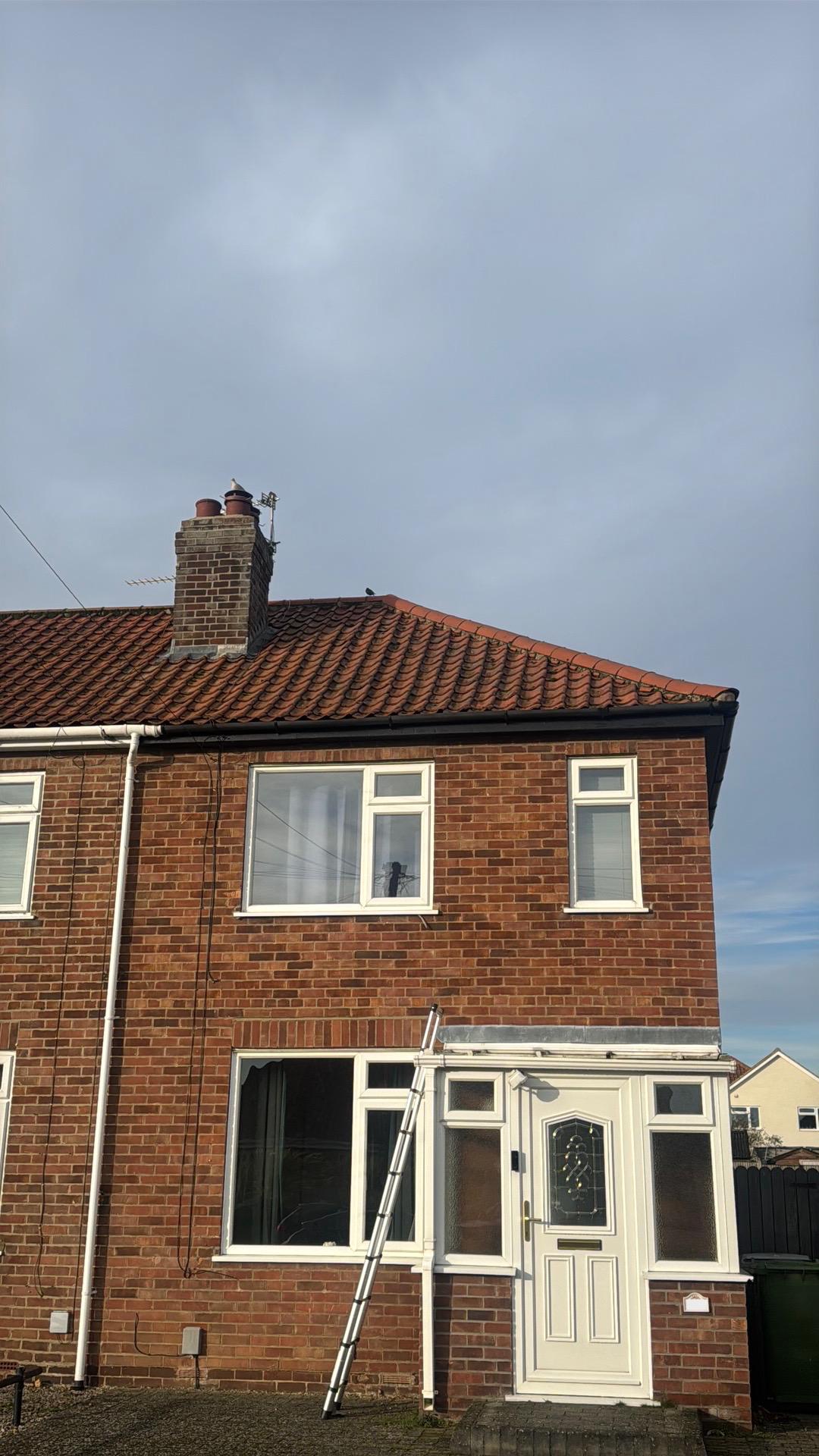 External inspection of roof covering, gutters, and chimneys